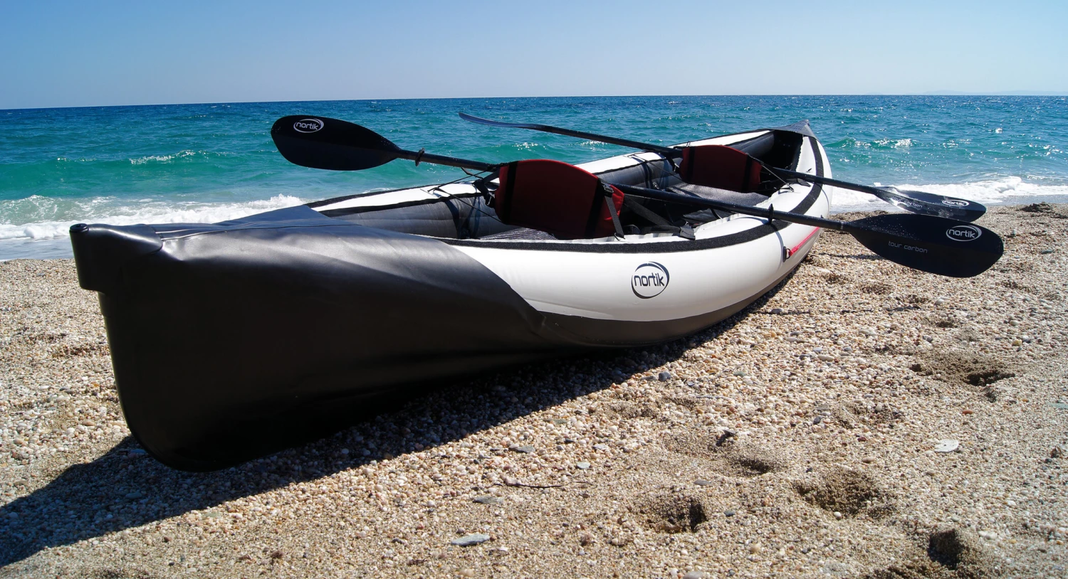 - Accessoires en option : Toit souple pour 2 personnes avec 2 tabliers vaporisateurs, Top Solo, Système de direction, Pagaie nortik Allround Fibre de verre ou Tour Carbon