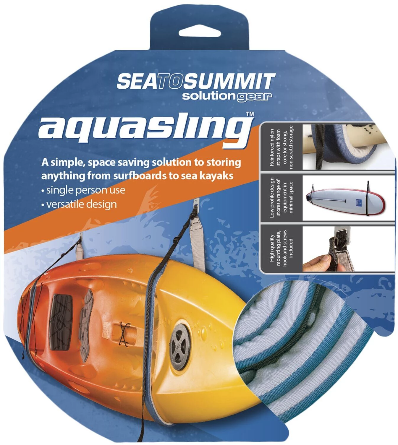 L’Aquasling permet tout simplement de tout ranger, de la planche de surf au kayak, de manière simple et pratique. Le design génial et peu encombrant te permet de fixer ton équipement dans une position particulièrement plate tout en le protégeant mieux que tous les systèmes comparables.